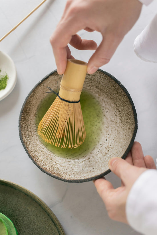 Chez Kizoku Matcha, nous savons que le plaisir de consommer du matcha ne se limite pas à sa saveur. La préparation du matcha est une étape qui invite à la détente et à la pleine conscience. Nous vous proposons donc une gamme d’accessoires inspirés des pratiques japonaises traditionnelles pour préparer votre thé avec soin. Parmi ces accessoires, vous trouverez le chasen, un fouet en bambou conçu pour battre la poudre de matcha bio jusqu'à obtenir une mousse fine, ainsi que le chawan, un bol aux formes arrondies, idéal pour savourer votre thé. Chaque accessoire est indispensable pour la préparation et la dégustation du matcha, vous permettant de recréer l'ambiance apaisante de la cérémonie du thé à la maison.